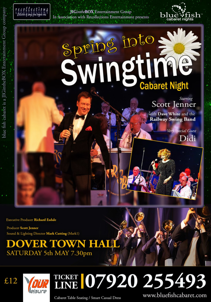 "Spring into Swingtime" - (CABARET NIGHT) Saturday 5th May 7.30pm - Tickets: £12 Another incredible Big Band experience with the fantastic swing vocal star Scott Jenner with very special guest star Didi - Featuring Dave White and the Railway Swing Band. ** No Money Required at this stage to PRE-BOOK : 07920 255493 ** This … Continue reading Spring into Swingtime – Sat 5th May 2018